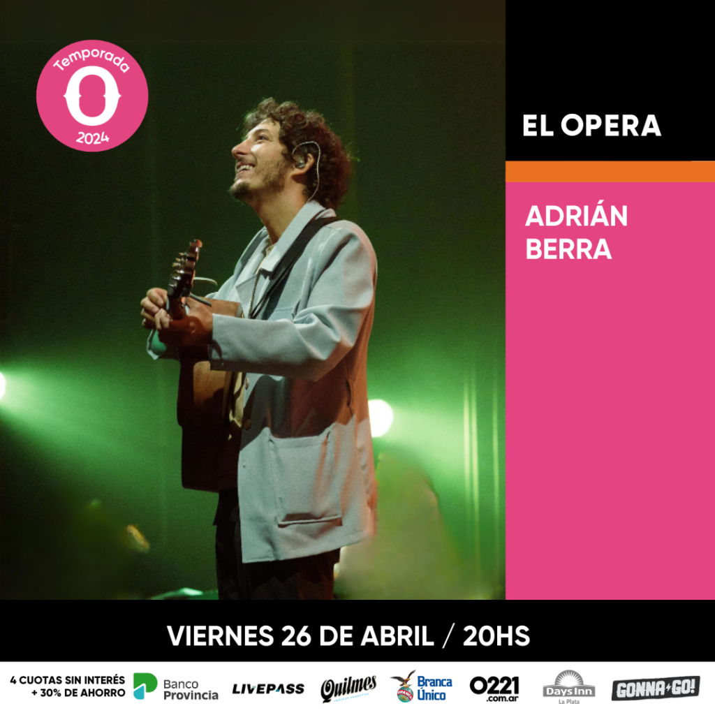 Luego de un 2023 que lo encontró girando por 7 países y varias provincias argentinas donde presentó su último disco “Respirar Bajo el Agua”, Adrián Berra vuelve a La Plata, esta vez al Teatro Ópera junto a su nueva banda, para recorrer y versionar su repertorio, la cita será el viernes 26 de abril, 20hs, entradas a la venta por sistema Livepass y boletería del teatro.