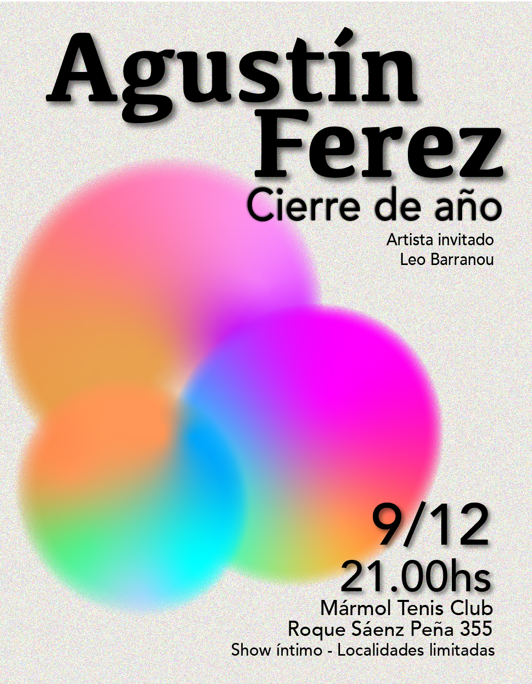 Actualmente Ferez se encuentra preparando un show íntimo para cerrar el año compartiéndolo con las personas más afines y allegadas a su propuesta artística. Se presentará junto a sus dos compañeros del trío (Nehuén Manzano y Feliciano Matías), formación con la que realizó muchos de los conciertos de este año, y con su colega Leo Barranou, quien a su vez estará abriendo la noche con algunas canciones en formato acústico. El encuentro promete ser una experiencia cálida e inmersiva, con luces tenues, almohadones en el suelo alrededor de la banda, y una imponente puesta audiovisual. El show se llevará a cabo el 9 de diciembre en el Marmol Tenis Club, en la localidad de Jose Mármol, al sur del conurbano bonaerense.