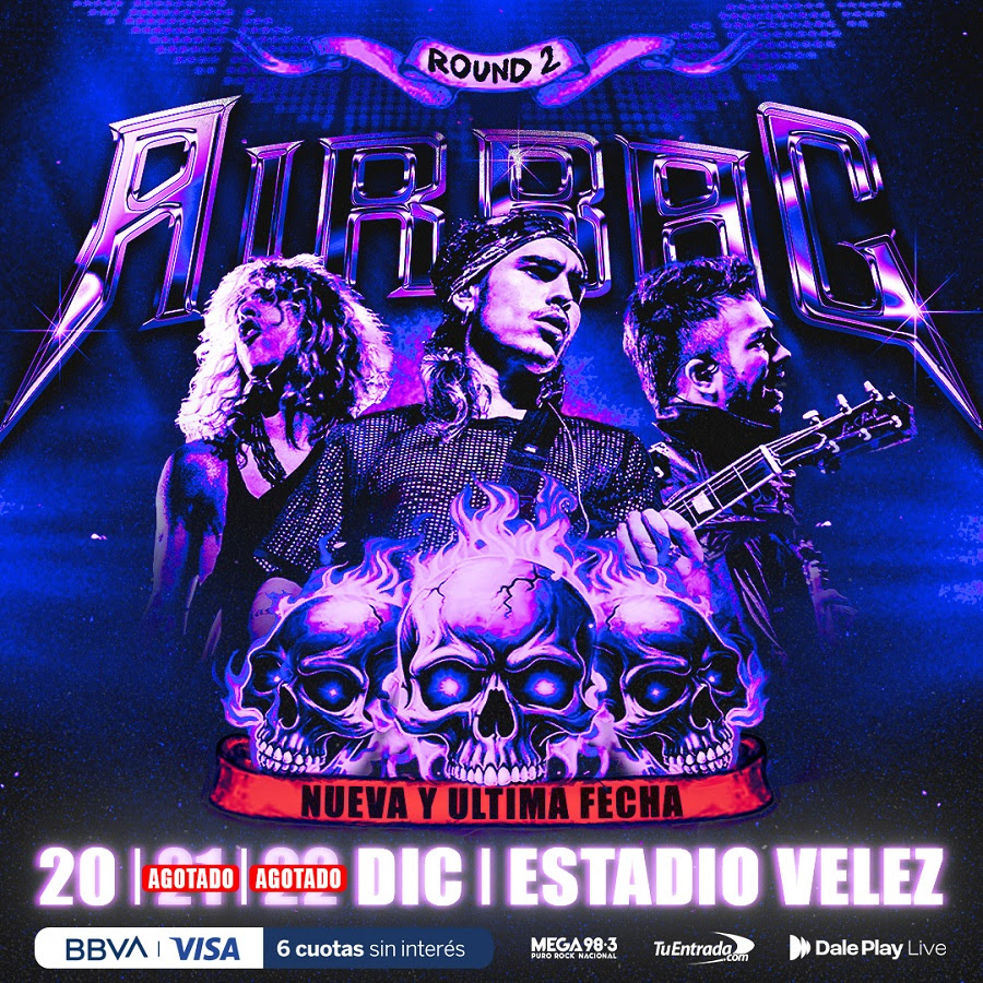 Comenzando el 2024 ovacionados por más de 50 mil personas en seis Luna Park con entradas agotadas, y arrasando en su gira por Argentina, Latinoamérica y España, el rock de AIRBAG crece cada día más, siendo unas de las bandas más convocantes de la escena. Los hermanos Sardelli sorprendieron a sus fans con su vuelta al Estadio Vélez, donde ya habían cerrado el 2023 con un contundente show, logrando un nuevo hito en su carrera. Esta vez acompañados por los seguidores de siempre, con el rock como bandera y con un show en vivo alucinante, su público creció exponencialmente y van por su tercera fecha.