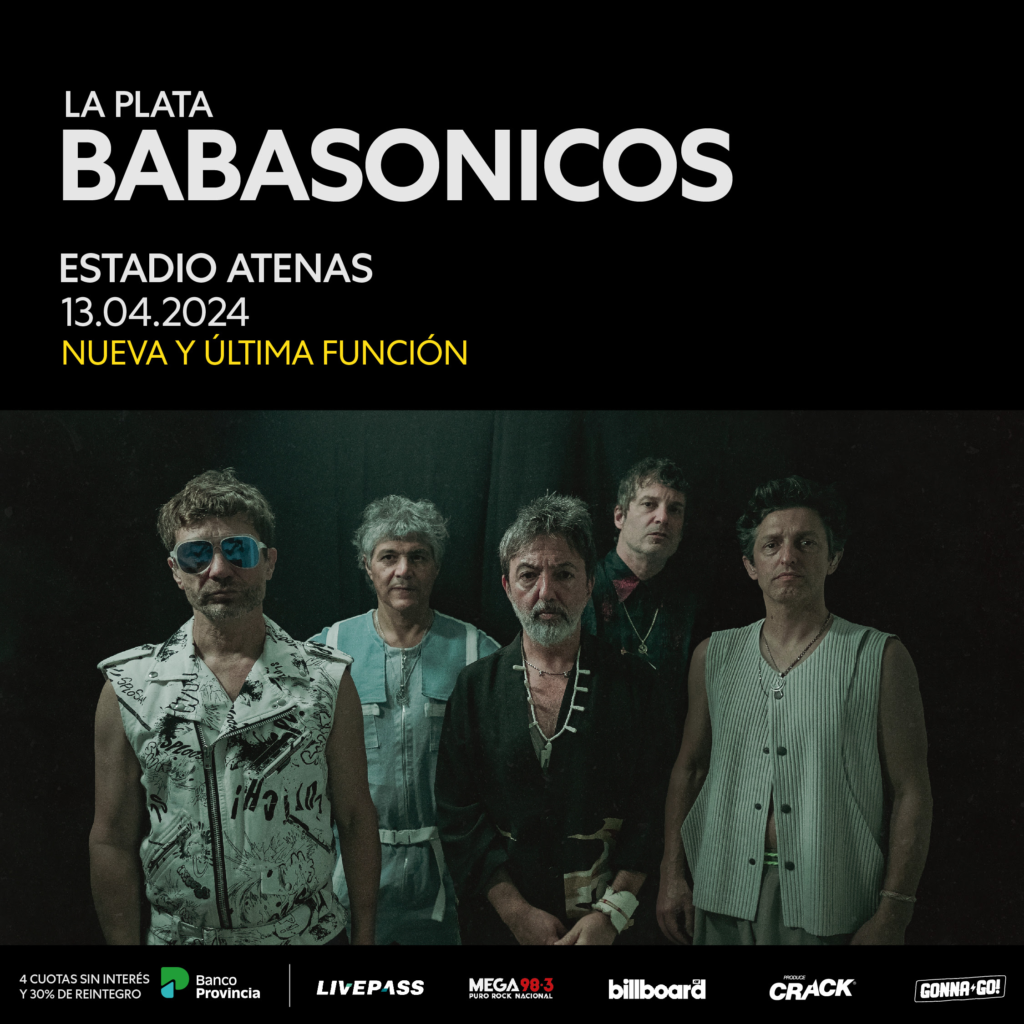 Luego de un exitoso 2023 en donde convocaron 55.000 personas en el campo de polo y realizaron giras por Europa, USA y toda Latinoamérica, Babasonicos regresa a la ciudad de La Plata para presentarse los días viernes 12 y sábado 13 abril en el Estadio Atenas, Las entradas anticipadas ya se encuentran a la venta por sistema Livepass y boletería del Teatro Ópera.