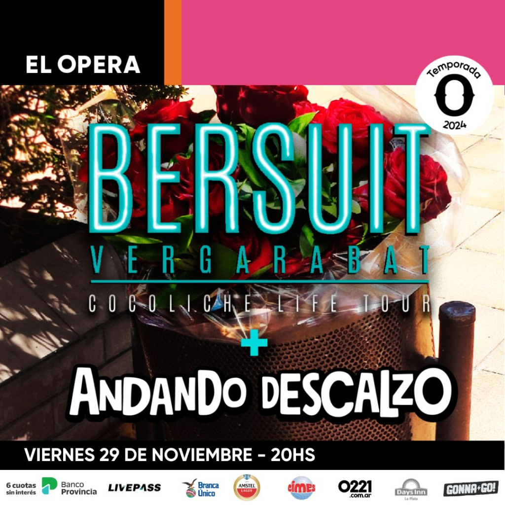 En el marco del Cocoliche Life Tour Bersuit Vergarabat llega al Teatro Ópera La Plata junto a Andando Descalzo. El encuentro de estas dos grandes nacionales junto al público platense será el viernes 29 de noviembre – 20hs.