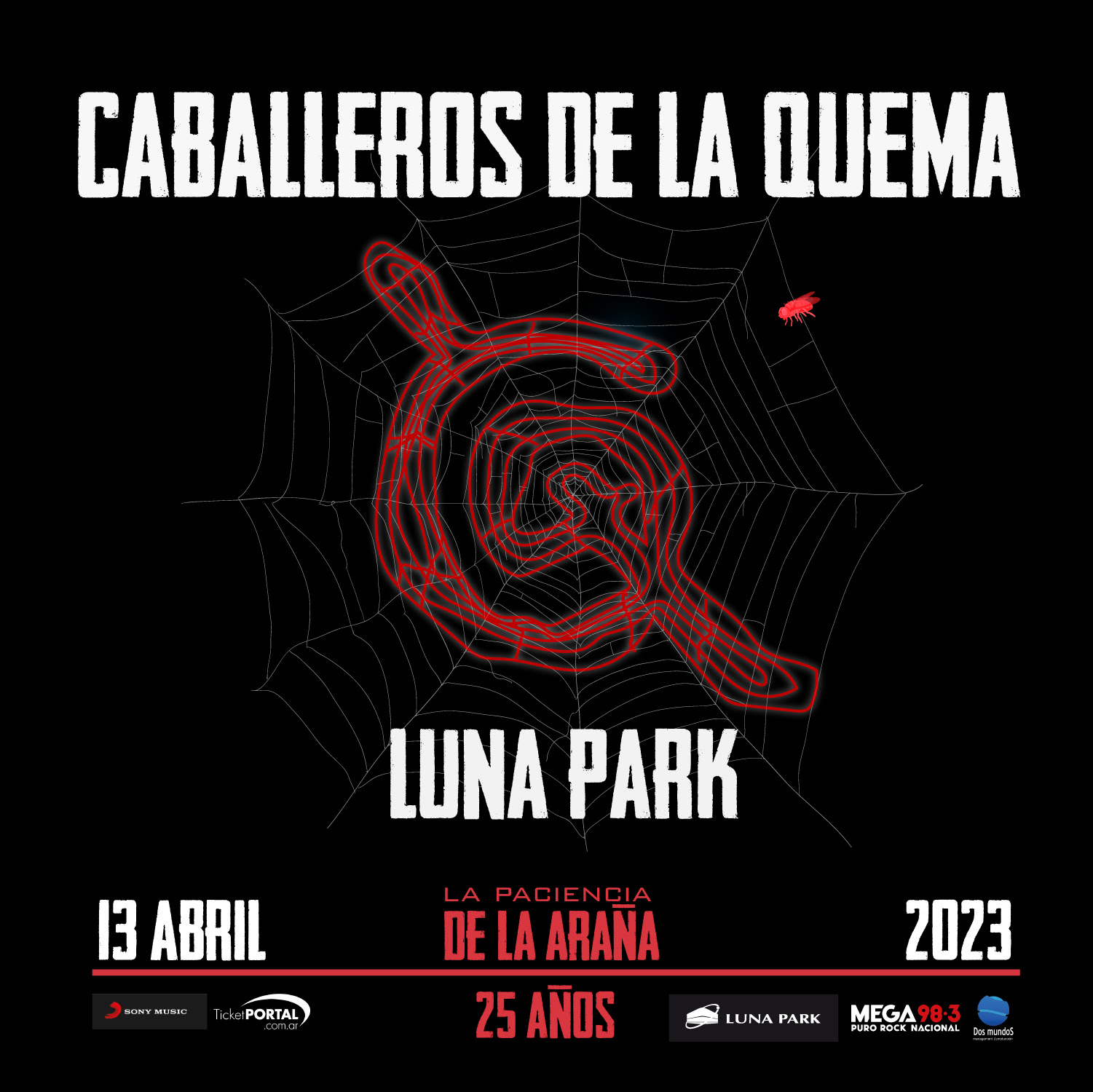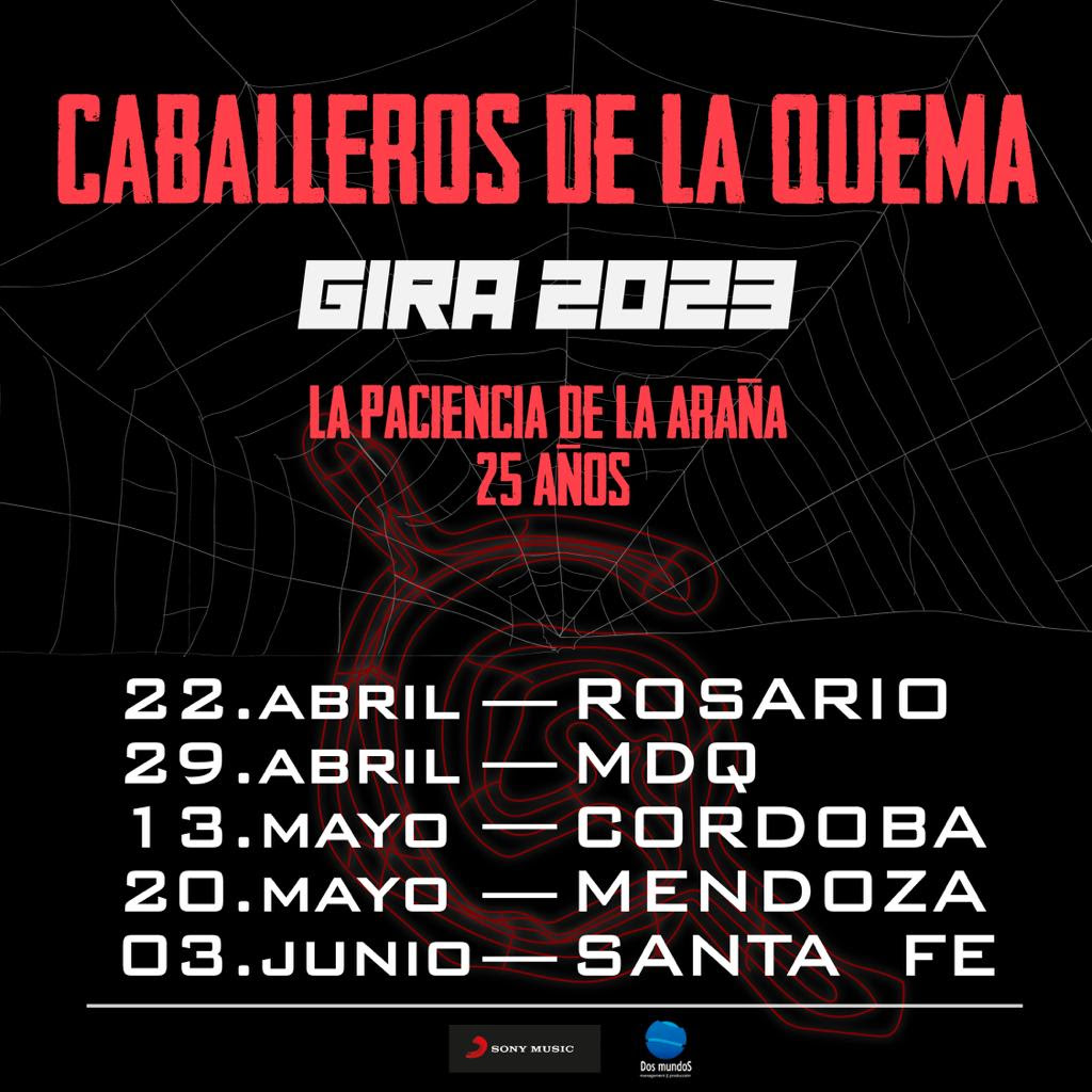 Los Caballeros de la Quema se presentan por primera vez en el Luna Park para celebrar los 25 años de “La Paciencia de la Araña” (disco con el que vendió mas de 120.000 unidades) y que contiene los hits “Avanti Morocha”, “Oxidado” “Raja Rata” y “Madres” entre otras canciones.