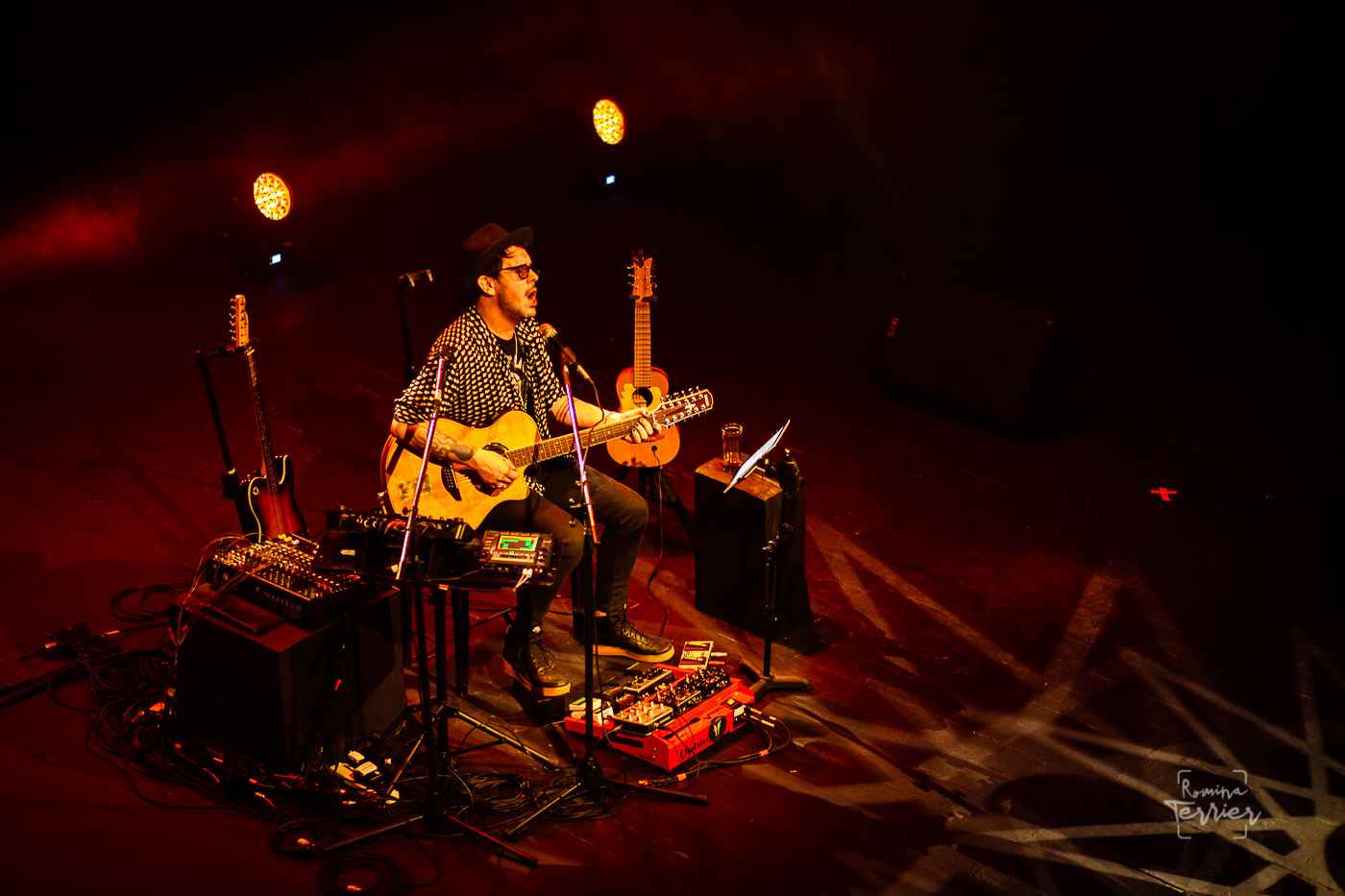 Fueron más de una docena de canciones, repasando toda su discografia y creando un clima entre intimista pero también electrónico debido a los loops que iba confeccionado según la canción que tocara. También el cantante nacido en Viedma aprovechó para tocar temas de su más reciente trabajo Criptograma.