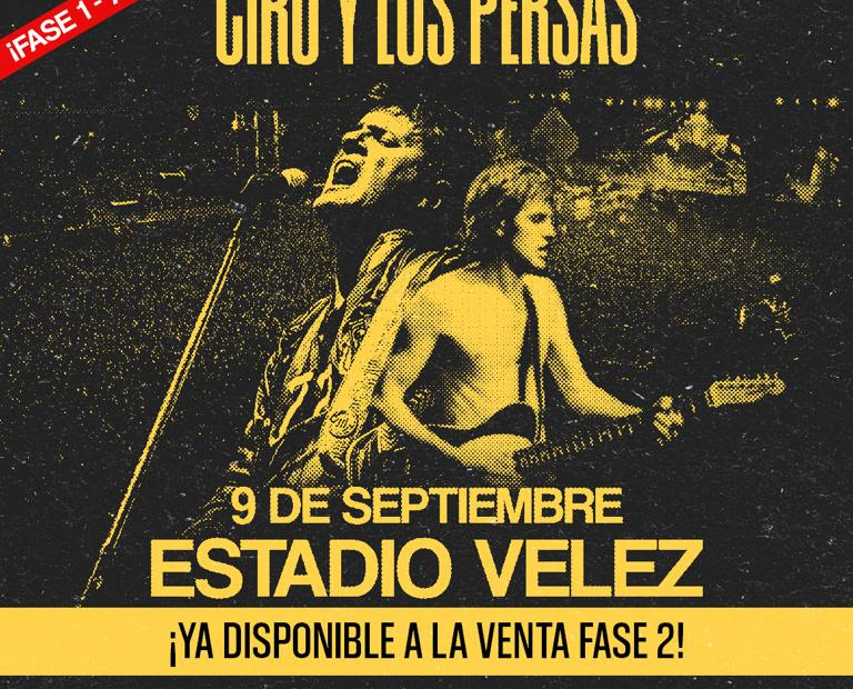¡Ciro y los Persas vuelven al Estadio Vélez Sarsfield el sábado 9 de septiembre! La fase 1 de anticipadas está agotada. Ya está a la venta la fase 2 hasta agotar stock, por ticketek. Es el quinto show en el Estadio Vélez en la carrera de Andrés Ciro Martinez. Mientras… Leer más »Ciro y Los Persas vuelven al Estadio de Vélez