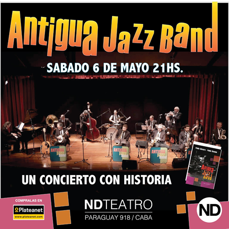 Entradas a la venta en plateanet.com y boletería del teatro La Antigua Jazz Band, legendaria agrupación fundada en 1968, se presentará el sábado 6 de mayo en el Teatro ND Ateneo (Paraguay 918, C.A.B.A). Las entradas ya están a la venta en plateanet.com.ar y boletería del teatro.… Leer más »ANTIGUA JAZZ BAND. Un concierto con historia