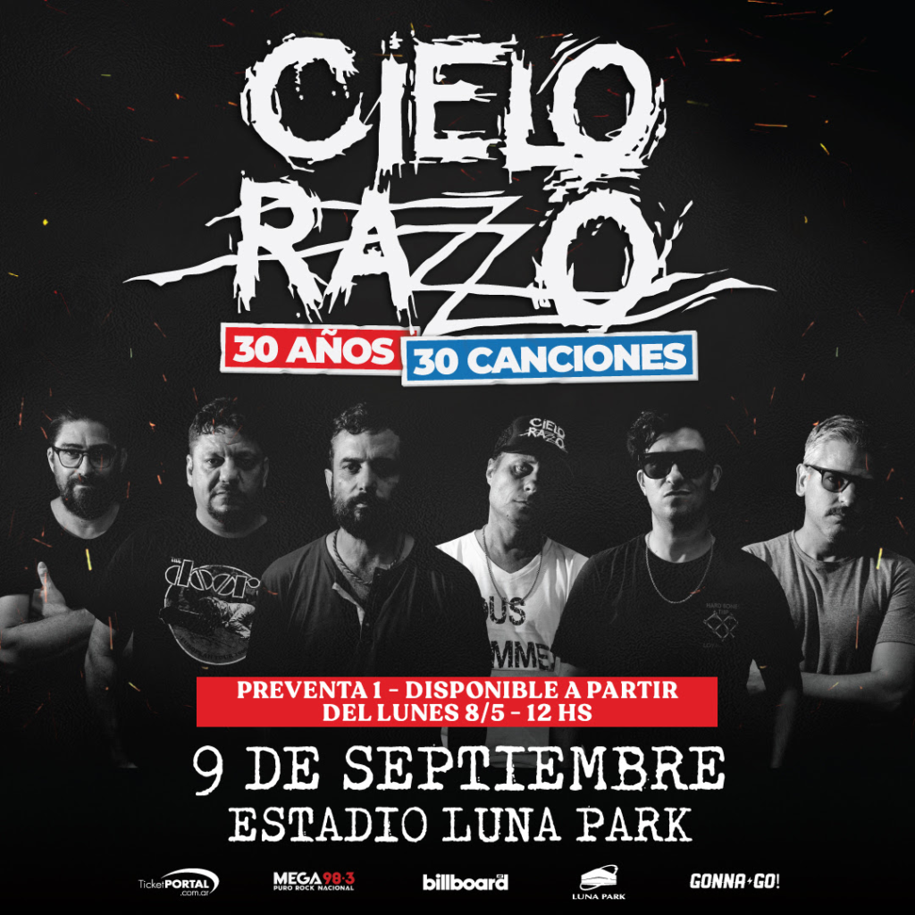 Cielo Razzo regresa al mítico Estadio Luna Park para festejar sus 30 años de trayectoria con su show 30 años – 30 canciones, en una noche inolvidable!!! La preventa 1 de entradas estará disponible a partir del lunes 8 de mayo, 12hs por sistema TicketPortal.
