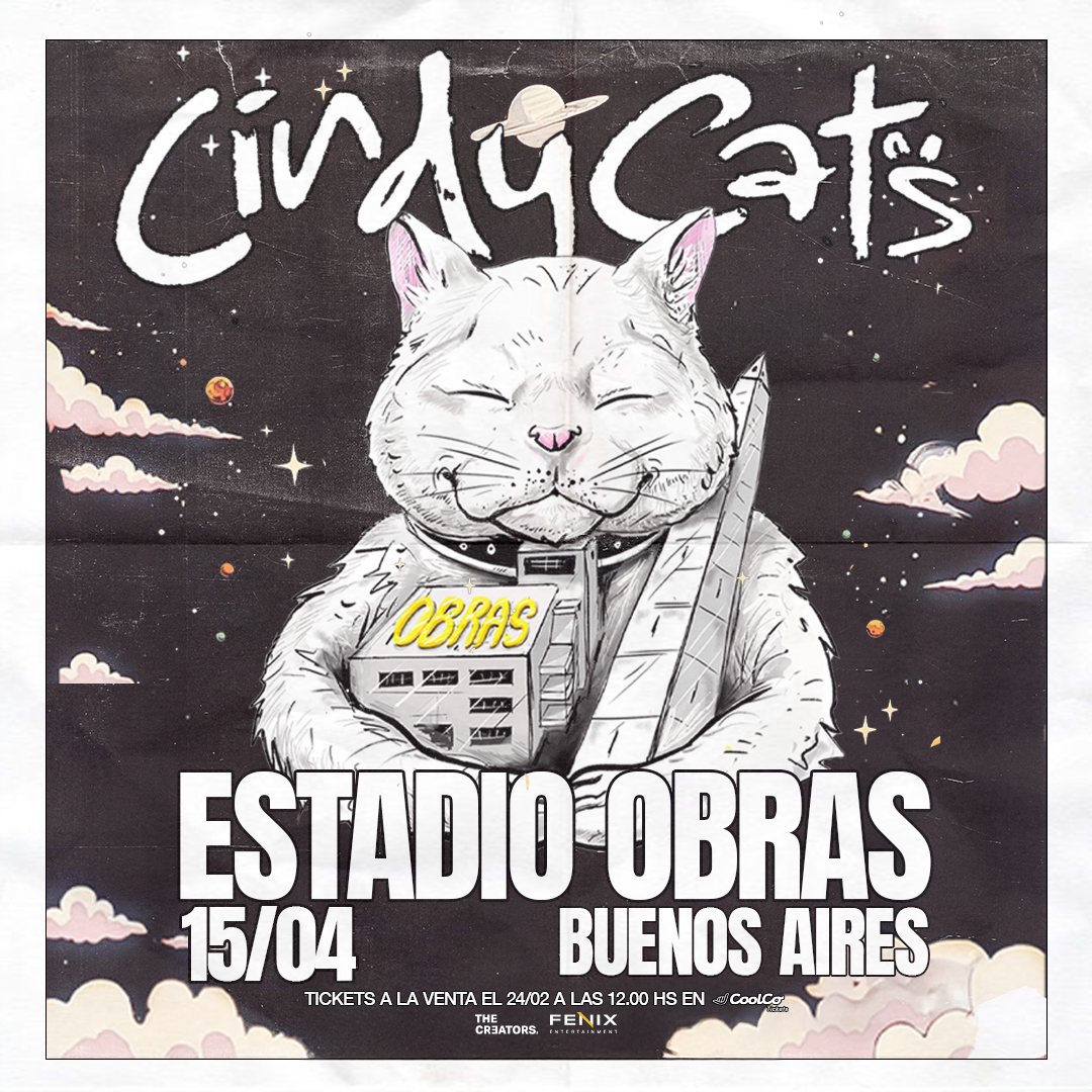 Cindy Cats, la banda que no deja de sorprender con su mezcla de sonidos, estilos y géneros musicales, regresa al templo del rock nacional. Tremendo desafío para el conjunto integrado por Francisco Alduncin, Pedro Pasquale, Axel Introini, Felipe Herrera, Julián Gallo, Gonzalo Isaí Palacios y Carlos Salas, los músicos de los artistas mainstream del país, que después de su primera edición XXL van por más: encargados de cerrar el Festival Buena Vibra anunciaron su primer show 2025 en Argentina en el legendario Estadio Obras, a realizarse el 15 de abril. Los tickets estarán disponibles a la venta a partir del lunes 24 de febrero a las 12 horas a partir de cool.co.