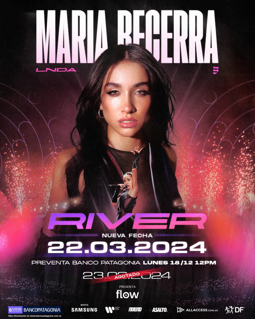 ¿Quién si no la nena de Argentina iba a ser la primera artista mujer del país en tener su propio show solista en el estadio más emblemático de la música? Con una fila virtual de más de 750 mil personas y un sold-out total en 90 minutos para el show del 23 de marzo, Maria Becerra tendrá otro récord: será la primera en hacer dos shows consecutivos en el mítico estadio. La segunda noche en River, también producida por DF Entertainment, será el 22 de marzo.