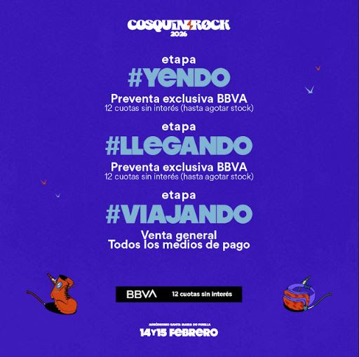La próxima edición ya tiene fecha: 14 y 15 de febrero de 2026. Y como este festival también se destaca por priorizar siempre a cada una de las personas que eligen ser parte de esta locura, vuelven las 12 cuotas sin interés con tarjetas BBVA durante todo el periódo de compra de entradas.