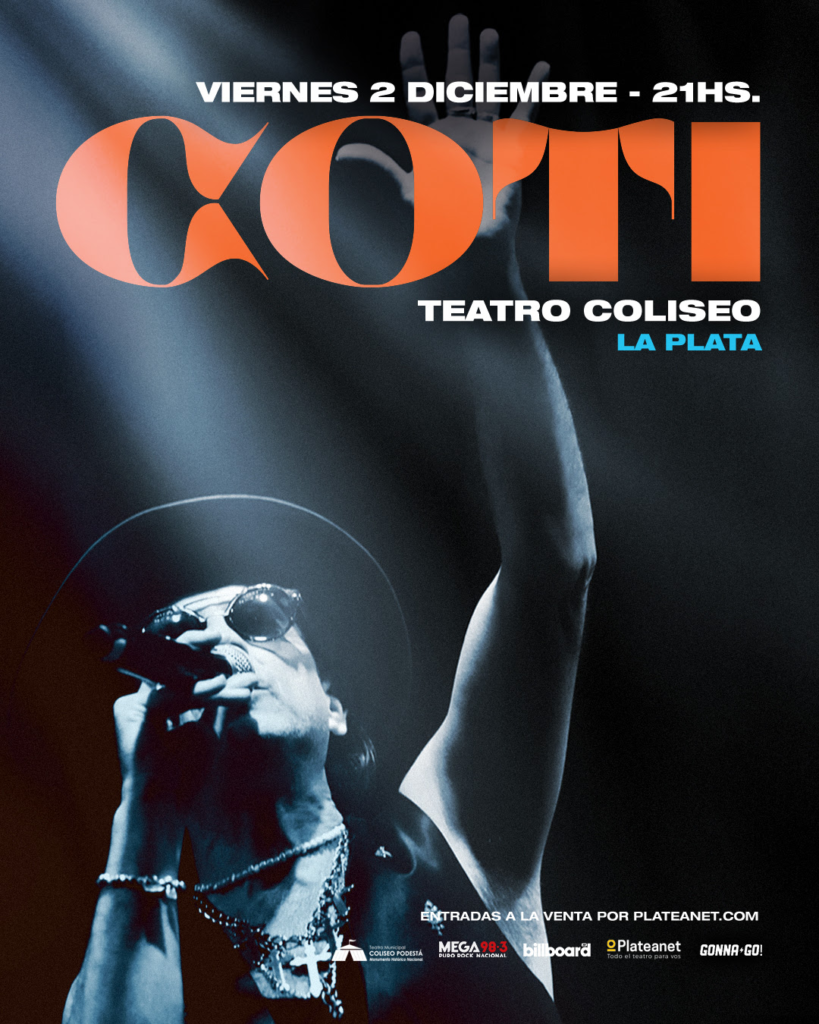 En el 2022 Coti volvió con más fuerza que nunca a retomar su gira de conciertos por Argentina, Europa y gran parte de Latam, volviendo a los escenarios luego de una pandemia que interrumpió casi por completo estas presentaciones. En estos momentos el artista se encuentra en su gira por Europa y terminando su próximo disco, que el 2023 verá la luz, para comenzar una gira Latinoamericana a partir del mes de octubre, llevándolo nuevamente a la ciudad de La Plata en el mes de diciembre donde el mítico Teatro Coliseo Podestá lo recibirá el viernes 2 de diciembre – 21hs – las entradas anticipadas pueden ser adquiridas a través de sistema Plateanet y boletería del teatro.