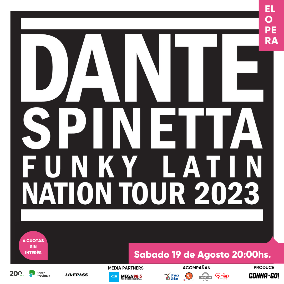 | Luego de ser consagrado con 4 Premios Gardel en las categorías de Productor del año, Mejor Canción de Rock, Ingeniería de Grabación, Mejor Colaboración de Música Urbana, Dante Spinetta llega al Teatro Ópera La Plata en marco de su ¨Funky Latin Nation Tour 2023¨ La cita será el sábado 19 de agosto, 20hs y las entradas anticipadas ya se encuentran a la venta. |