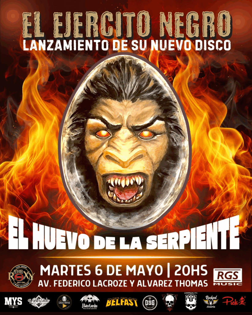 El Ejercito Negro presenta el lanzamiento Oficial de su 2do disco de estudio «El huevo de la Serpiente» la cita sera el Martes 6 de Mayo a las 20hs en The Roxy Bar&Grill, Av. Federico Lacroze y Alvarez Thomas.