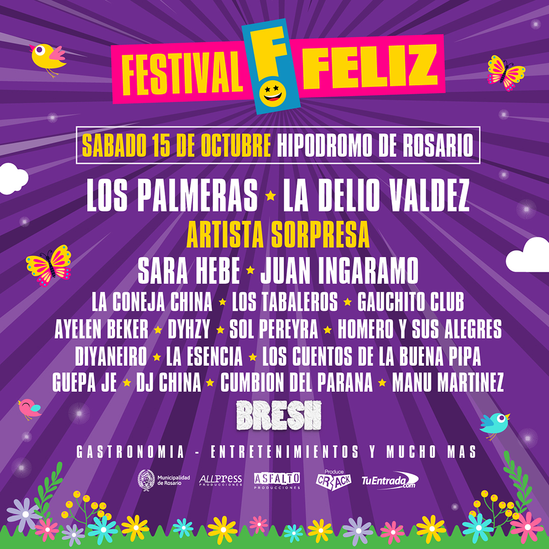 2 escenarios, baile, ritmo, libertad, bandas en vivo, Djs, fiestas es algo de lo que se podrá disfrutar y vivir en el FESTIVAL FELIZ el sábado 15 de octubre en el Óvalo del Hipódromo del Parque Independencia de Rosario.