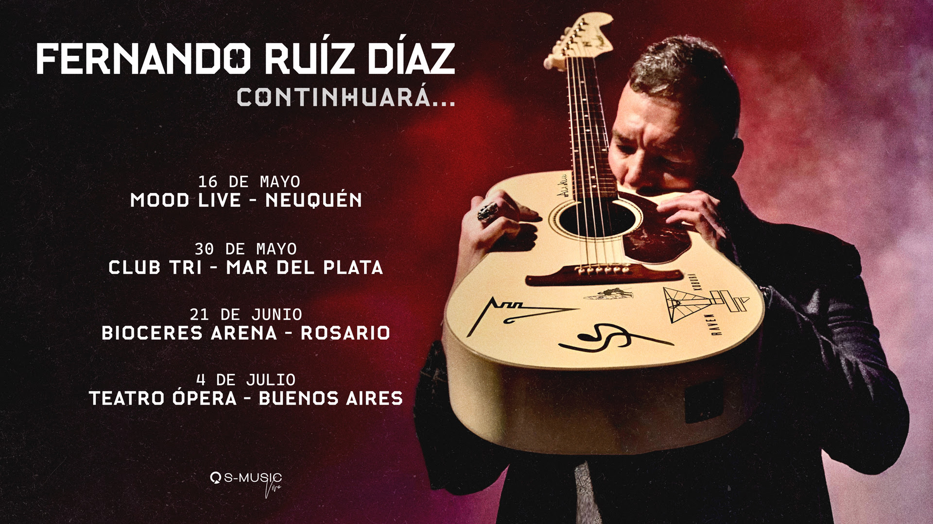 Tras un tiempo de ausencia, Fernando Ruíz Díaz vuelve a los escenarios con su gira “Continhuará…”. En ella presentará su nuevo álbum en solitario, que lleva el mismo nombre y que saldrá el miércoles 7 de mayo. Este material marca un recorrido por los grandes éxitos de Catupecu Machu, así como también por algunas reversiones de clásicos que forman parte de la historia del rock nacional, con el toque único que solo Fernando sabe impregnarles.