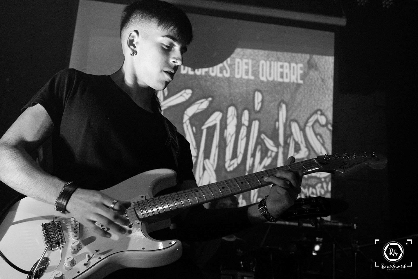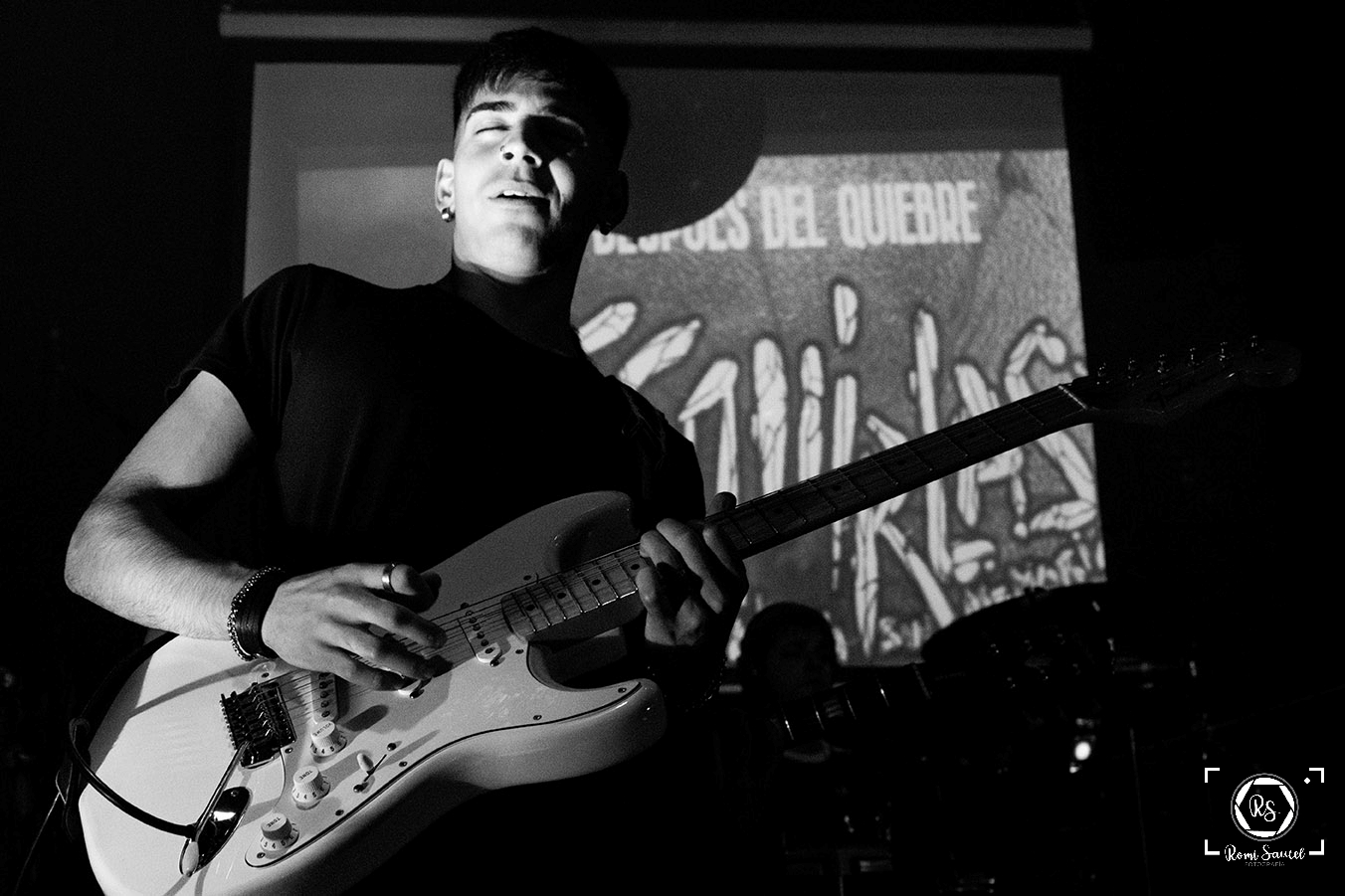 Y no fue solamente un show de esquirlas. Fue un espectáculo integral con una batucada, un freestyler que prendió aún más fuego el escenario y un Dj que animó también la noche. Como bien explicaba el folleto que se entregaba en la entrada al show “ Así les presentamos un show dividido en 3 partes. En la que cada una cuenta con una de las canciones presentadas aquí arriba. Con la intención de contar la primera etapa de este proyecto que fue mutando pero dejando en el camino canciones como esquirlas de cada historia “. Las canciones eran “El viaje” , “Cuando los cuelgue el tiempo” y “Terminal”.