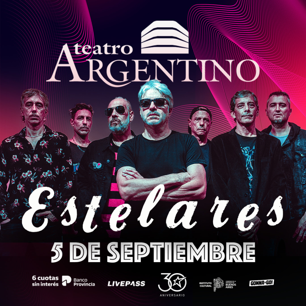La consagrada banda Estelares se encuentra celebrando sus 30 años con shows en todo país, en el marco de esta gira la banda se estará presentando en el mítico Teatro Argentino de la ciudad de La Plata en show donde recorrerán su extensa trayectoria y adelantarán temas nuevos.