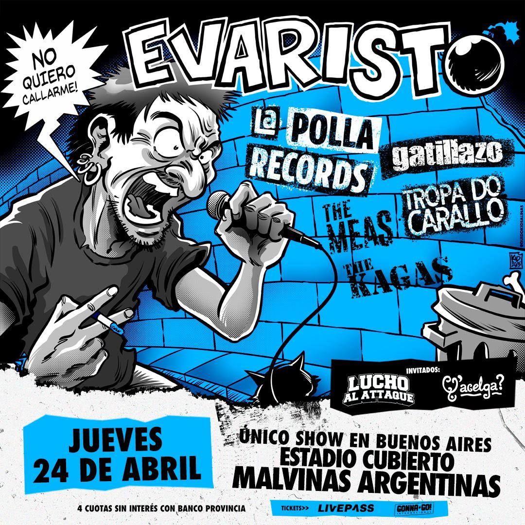 Acompañado de grandes músicos que han sido parte de su extensa trayectoria, Evaristo, hará un recorrido por su carrera que incluirá clásicos de La Polla Records, Gatillazo, The Meas, The Kagas y Tropa Do Caballo, su más reciente proyecto.