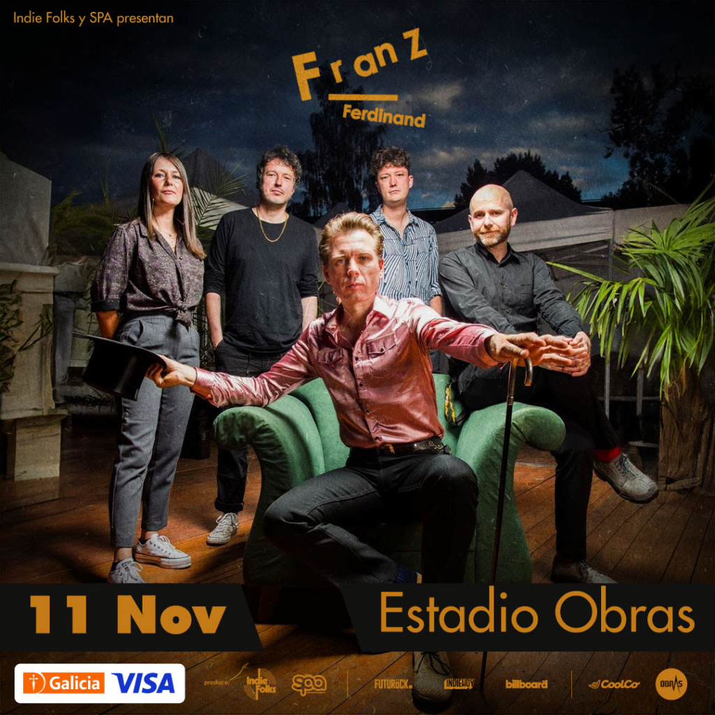 20% de ahorro (sin tope de reintegro, hasta agotar stock) y hasta 6 cuotas sin interés abonando con tarjetas Galicia Visa.Venta general (todos los medios de pago) disponible a partir del 5 de septiembre a las 12h. Hasta 6 cuotas sin interés abonando con tarjetas Galicia Visa.Franz Ferdinand vuelve a Argentina. Seis años después de su última presentación en el país, Franz Ferdinand está de regreso con un show único que celebra sus 20 años de carrera y los hits más épicos de su discografía. La cita será el lunes 11 de noviembre en Estadio Obras. El álbum debut homónimo de Franz Ferdinand se estrenó hace 20 años, el 9 de febrero de 2004, alcanzando los primeros números en las listas de éxitos y llevando a la banda al éxito inmediato. El disco, que contenía los singles como «Take Me Out», «Michael», «The Dark Of The Matinee» y «This Fire», se convirtió en un clásico de forma casi inmediata.