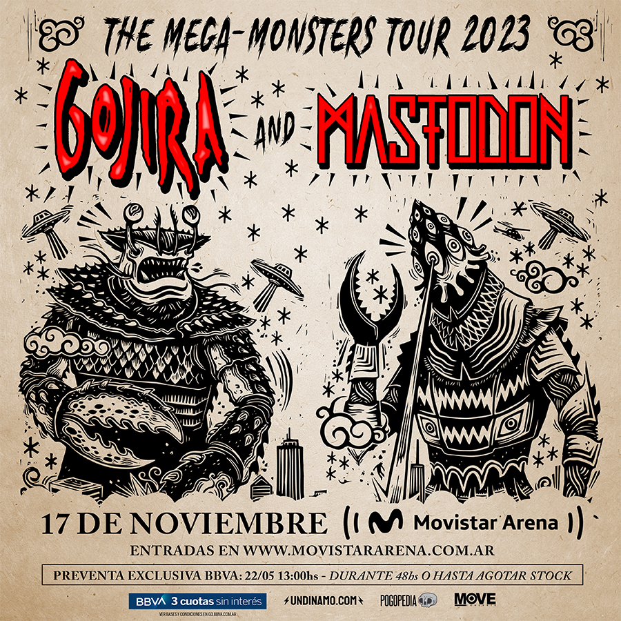 ¡Prepara tus oídos para la experiencia musical más intensa del año! Gojira y Mastodon, dos de las bandas más influyentes de la escena del metal mundial llegarán a Buenos Aires de la mano de su «Mega Monster Tour 2023». Un evento único, que promete hacer historia y representa una oportunidad de lujo e irrepetible para los amantes del metal y el rock progresivo.