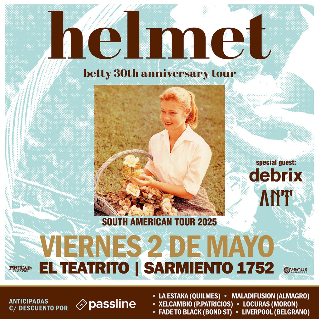 Los grupos que acompañaran a HELMET seran DEBRIX desde Brasil y la prometedora banda argentina ANT que viene de presentarse en una gira por los Estados Unidos .