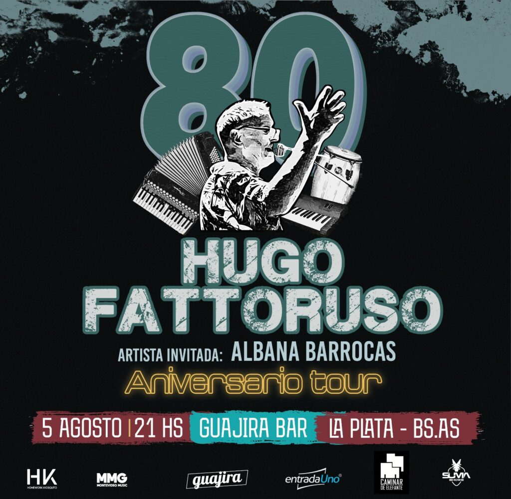 Admirado y reconocido por músicos de los más diversos géneros y nacionalidades, Hugo Fattoruso se embarca en una nueva gira por Argentina, con motivo de celebrar su 80 aniversario, en donde recorrerá temas de suautoría y sus clásicas versiones del cancionero popular mundial y de Ha Dúo su actual proyecto junto a Albana Barrocas, como artista invitada.