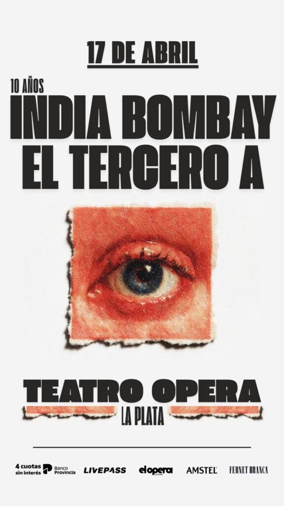 El grupo platense India Bombay inicia el camino hacia su primera década de trayectoria con “El Encuentro”, un show especial producido integralmente por la banda que se realizará el 17 de abril a las 21 hs en el Teatro Ópera La Plata, donde continuará presentando en vivo su último álbum, Editorial, y adelantará material inédito. La noche contará además con la participación de El Tercero A, en una fecha concebida como celebración colectiva entre bandas y público.
