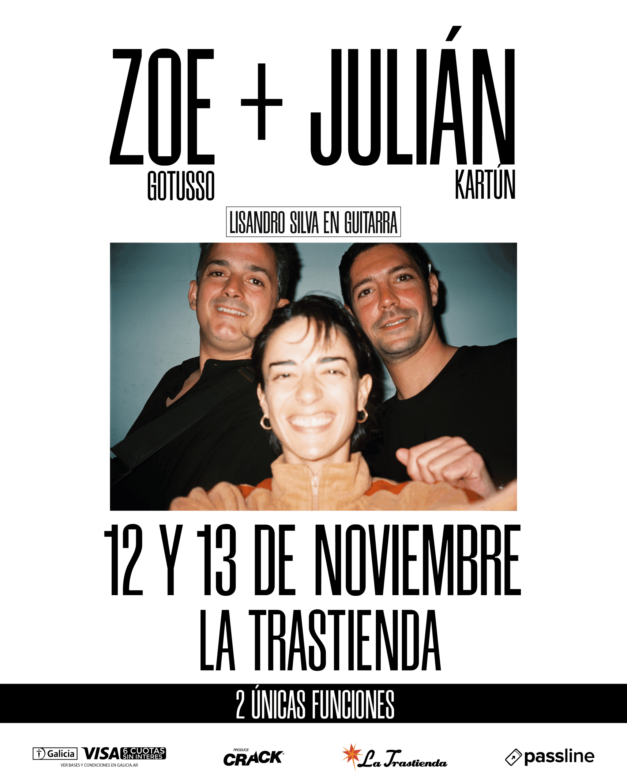 Desde sus inicios, Zoe Gotusso ha cautivado con su voz dulce y letras profundas, mientras que Julián Kartun ha sido reconocido por su estilo único y letras ingeniosas. No te pierdas esta primera oportunidad de ser parte de algo verdaderamente especial.