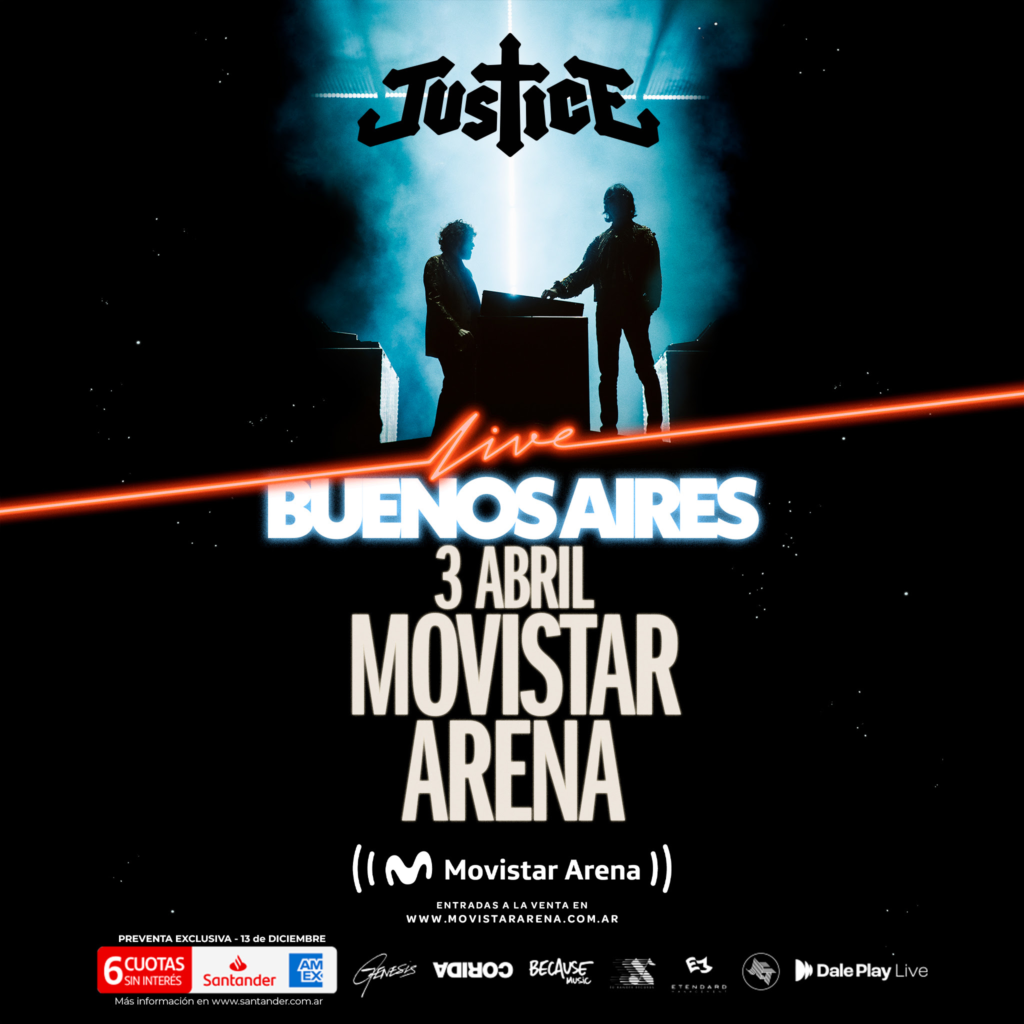 Justice llega a Argentina para presentar su nuevo y último álbum “Hyperdrama”, nominado a dos Grammys, el 3 de abril en el estadio Movistar Arena con una única fecha. La banda llega al país después de su última visita en 2012 para deslumbrar al público con un show de alto impacto y una puesta en escena imponente. Con un juego de luces que nos invita a un viaje surrealista. Nos espera sin dudas un espectáculo de otro nivel para disfrutar con todos los sentidos.