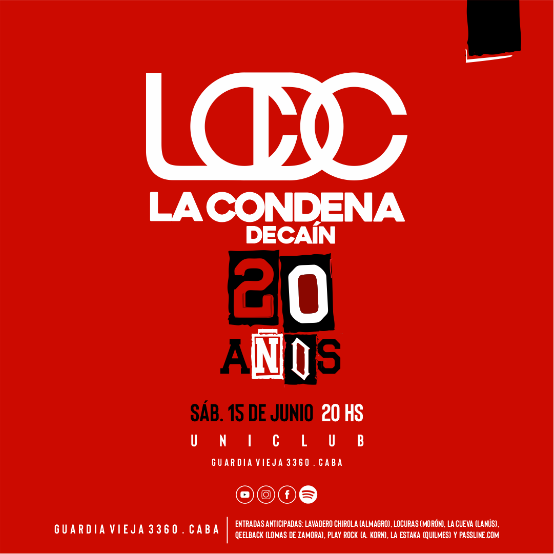 La Condena de Caín se encuentra de festejo y en el marco del vigésimo aniversario la banda se presenta en vivo el próximo sábado 15 de junio, 20hs, con un show prometedor donde no faltarán las sorpresas!!!