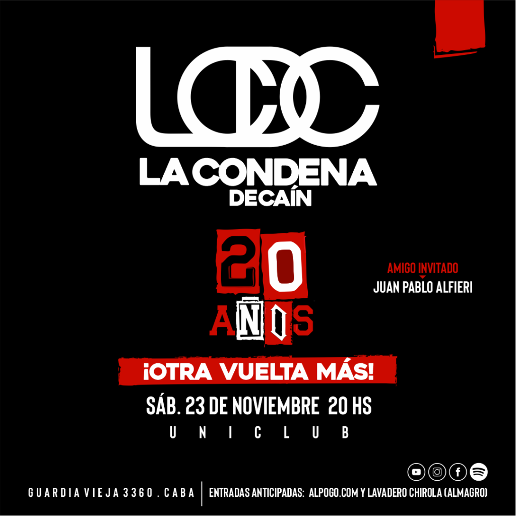 Este 2024 encuentra a La Condena de Caín celebrando sus 20 años, la banda este año lanzó dos exitosos sencillos titulados Def-Ghi y recientemente Bandidos junto a la inigualable Lula Bertoldi.