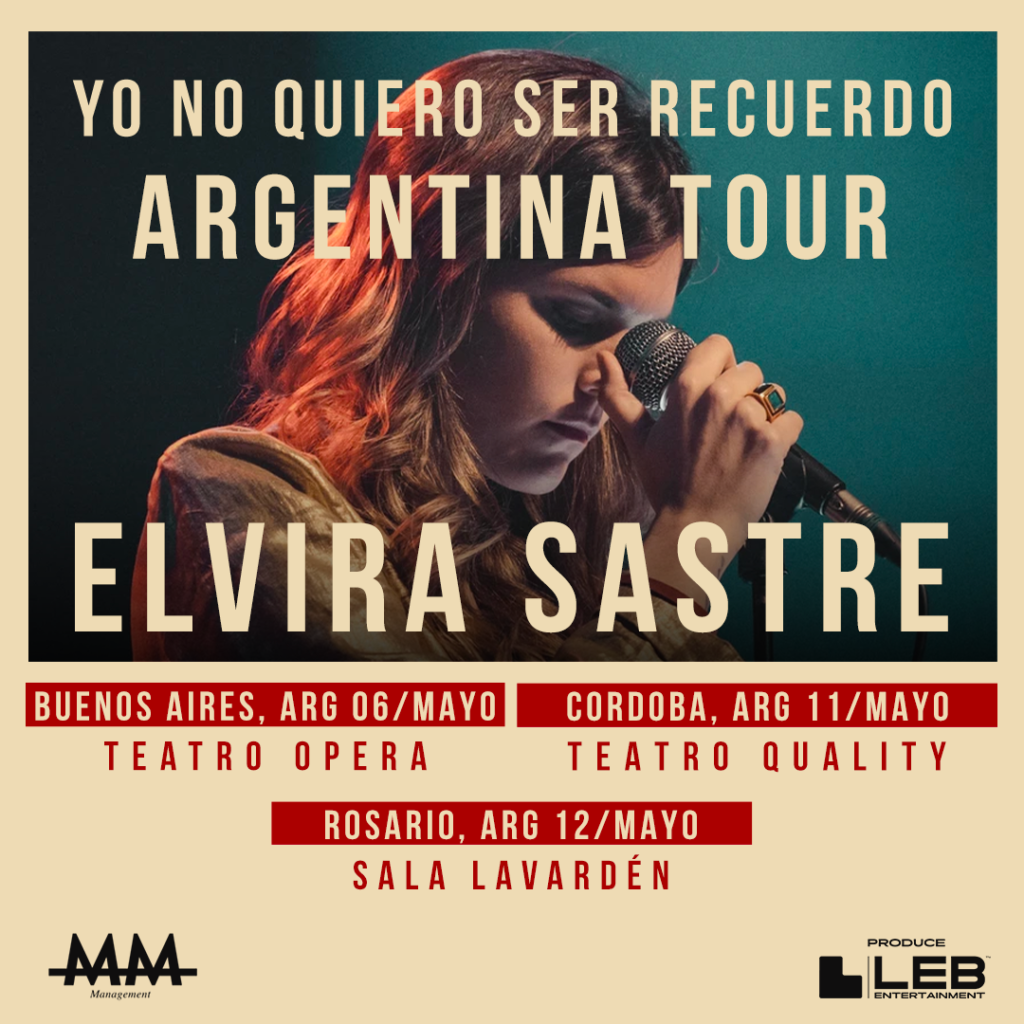 La poeta y escritora Elvira Sastre regresa a nuestro país bajo el marco de «Yo No Quiero Ser Recuerdo» – Argentina Tour (que ya fue un éxito en España y México). Esta será su tercer visita a Argentina (luego de tres Salas Siranush en 2018, Teatro Astral BA, Espacio Quality CBA y Plataforma Lavardén Rosario en 2019, y fue invitada del Congreso de La Lengua junto a Joaquín Sabina).