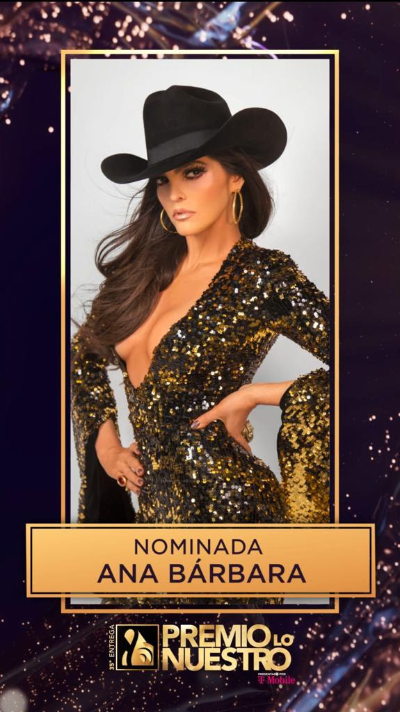 La cadena Univisión ha anunciado la lista oficial de nominados a la gala anual de Premio lo Nuestro y, por supuesto, la reina indiscutible del género regional Ana Bárbara vuelve a alzarse como nominada en la categoría de Artista Regional Mexicana del año en la entrega número 35 de PREMIO LO NUESTRO la cual se llevará a cabo el próximo 23 de febrero en la ciudad de Miami Florida.
