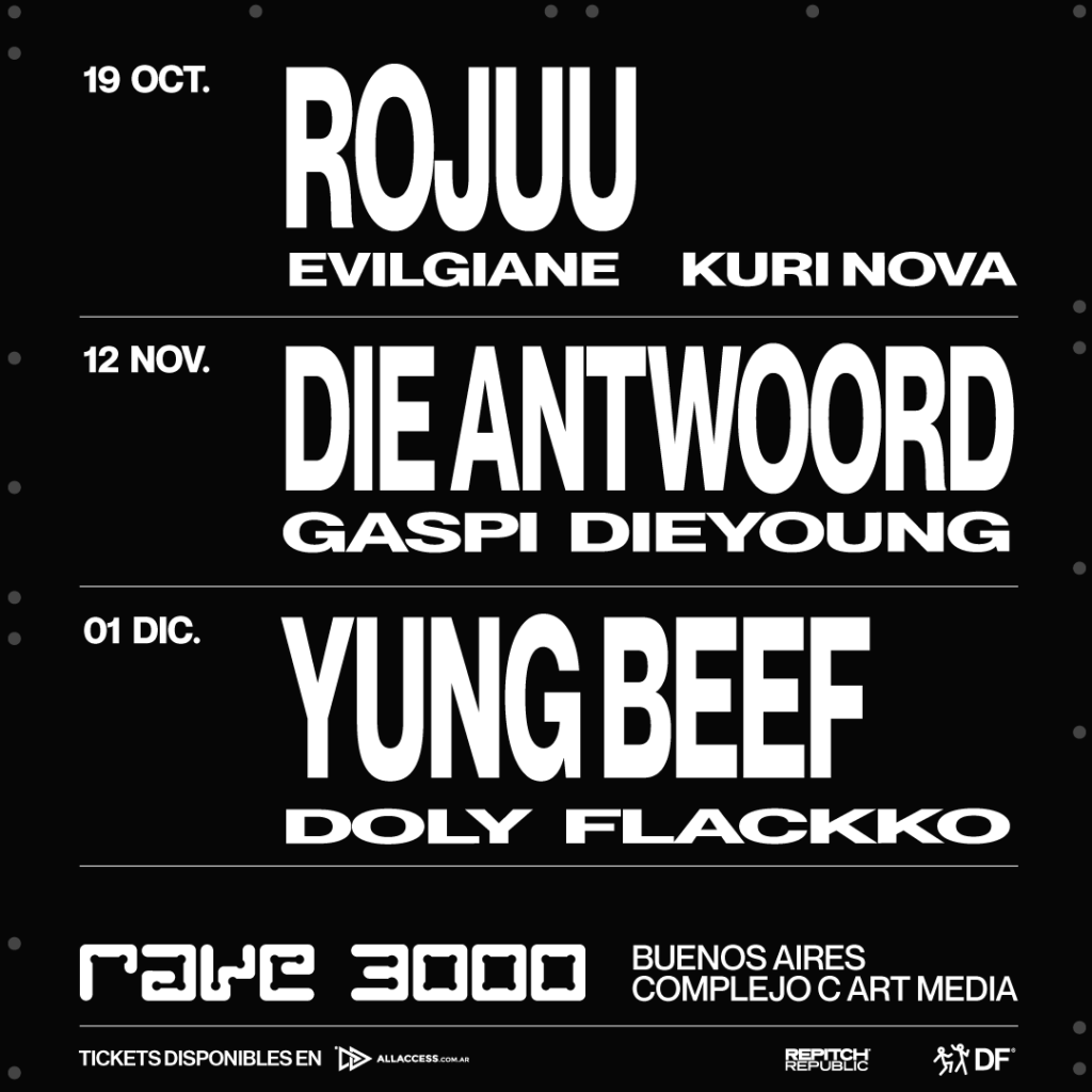 Rave 3000 vuelve a dar en la tecla para el paladar de la electrónica y los ritmos urbanos, esta vez con una serie de shows en el C Complejo Art Media de Rojuu, Die Antwoord y Yung Beef.