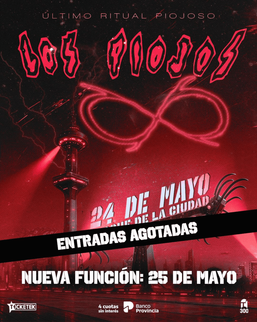 Los Piojos anunciaron el cierre de este tan esperado reencuentro para el 24 de mayo en el Parque de la Ciudad de Capital Federal. Las entradas salieron a la venta este mediodía y se agotaron en cuestión de horas. Se agregó una nueva función para el 25 de mayo en el mismo lugar, que ya se encuentra a la venta por sistema Ticketek.