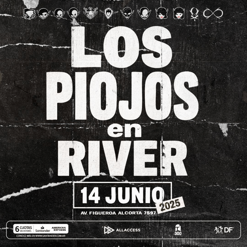 El final del reencuentro de Los Piojos está cada vez más cerca. A los shows del 24 y 25 de mayo en el Parque de la Ciudad (con entradas agotadas) se les agregó un nuevo concierto el 14 de junio en el Estadio River Plate, con producción de DF Entertainment y 300 Producciones. Las entradas estarán disponibles desde el miércoles 14 de mayo a las 13:00 horas (con preventa exclusiva para clientes Santander American Express) y el jueves 15 a las 13:00 horas será la venta general.