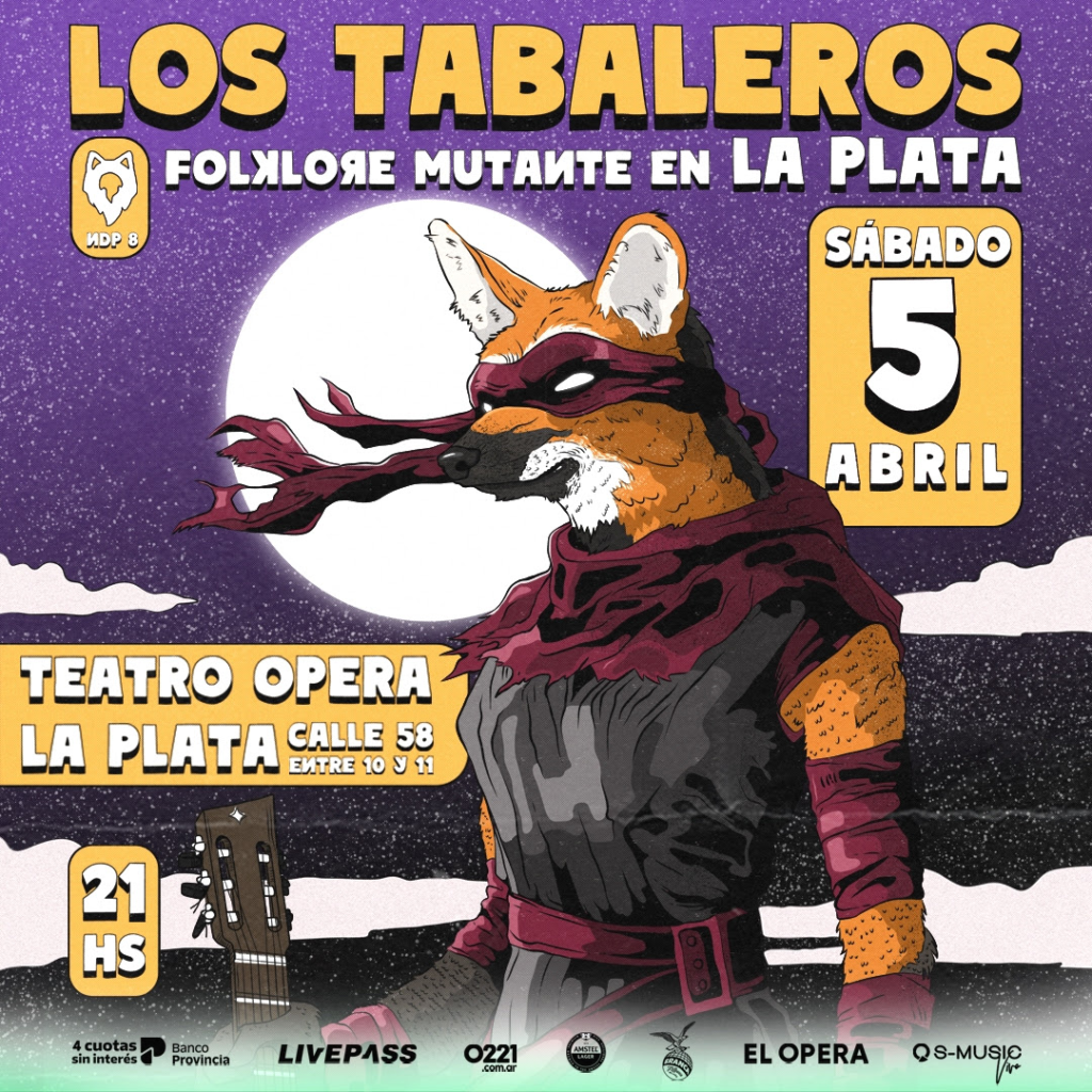 Los Tabaleros, la banda más original de la escena sigue girando por el país y revolucionando el folklore, en esta oportunidad arriban al Teatro Ópera La Plata el sábado 5 de abril, 21hs.