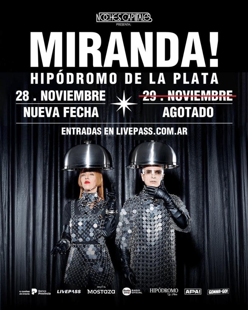 Miranda! tiene confirmada su participación en Noches Capitales para el 29 de noviembre y ya cuenta con entradas agotadas. Emblemas del pop argentino, anuncian una segunda fecha para el día 28 de noviembre convirtiéndose en los primeros artistas en hacer dos fechas en este Festival platense.