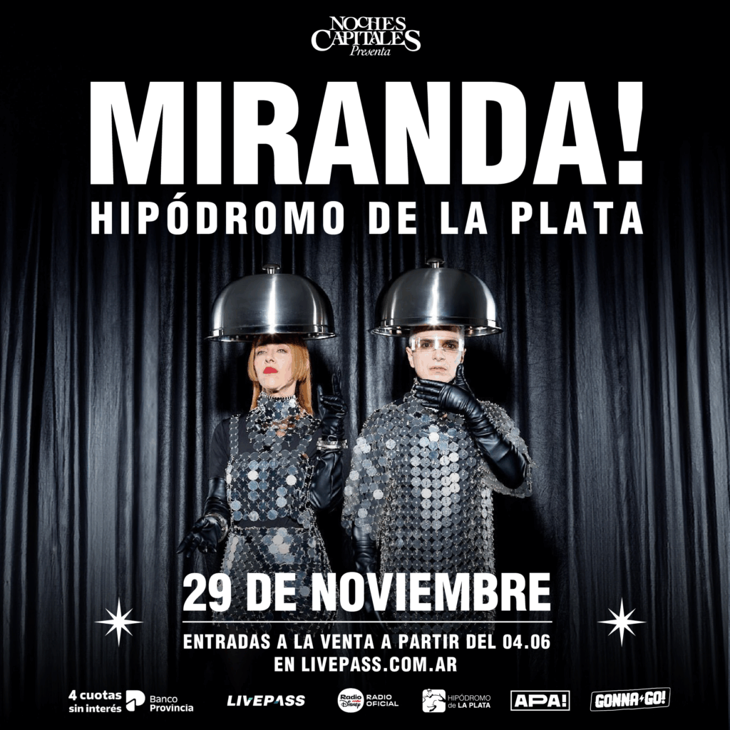 El dúo pop llegará a la ciudad de La Plata el sábado 29 de noviembre para presentarse en el Hipódromo con su gira 2025. En el marco del ciclo Noches Capitales, desplegarán una propuesta escénica imponente a cielo abierto con todos los hits que consagraron a Miranda! como referente del pop latinoamericano.