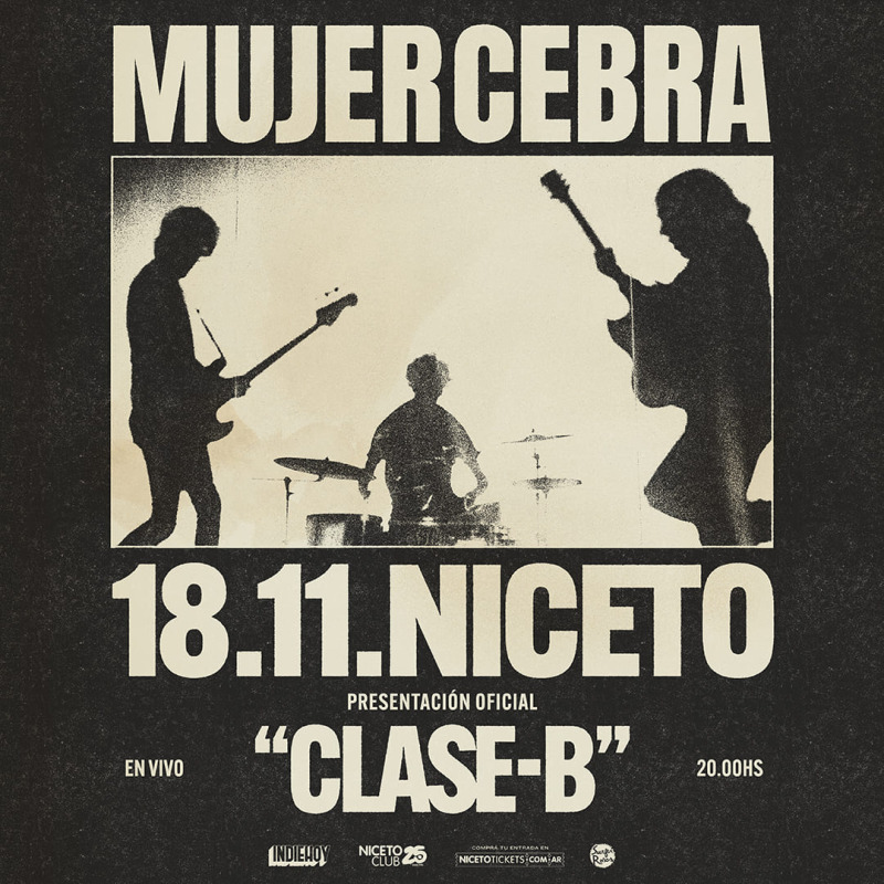 Mujer Cebra, integrado por Santiago Piedra en guitarra y voz, Gonzalo Muhape en bajo y Patricio García Seminara en batería, es una banda de rock alternativo, formada en 2018 en la Ciudad de Buenos Aires. El trío lanza su primer LP homónimo a finales de 2021, estableciéndose como uno de los principales referentes de la nueva escena alternativa. En octubre de 2023 editan su segundo LP “CLASE B”, un disco vanguardista, con una impronta marcada en la canción y que los ha posicionado como una de las bandas del momento.