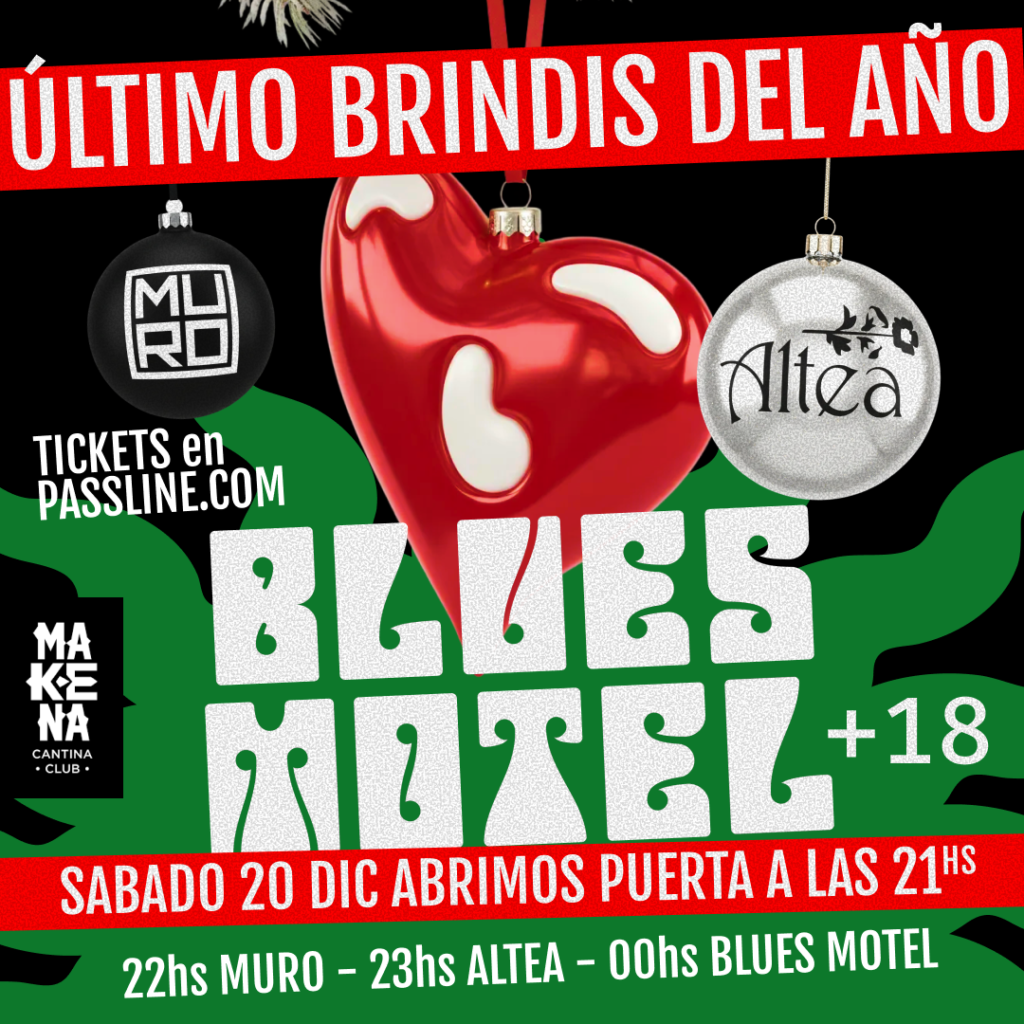 Despedí el 2025 en la clásica fiesta bluesmotelera navideña en nuestra casa, Makena !!!Este sábado 20 de Diciembre desde las 21hs. te esperamos para disfrutar de : MURO (22 hs, la banda de Seba Bereciartua también brindará por más rock and roll en el próximo año), y de ALTEA (23 hs) el grupo revelación de los hermanos Diaz Diotti, (hijos de Gaba), que presentan su primer disco y se suman al festejo de amigos familia y fans.