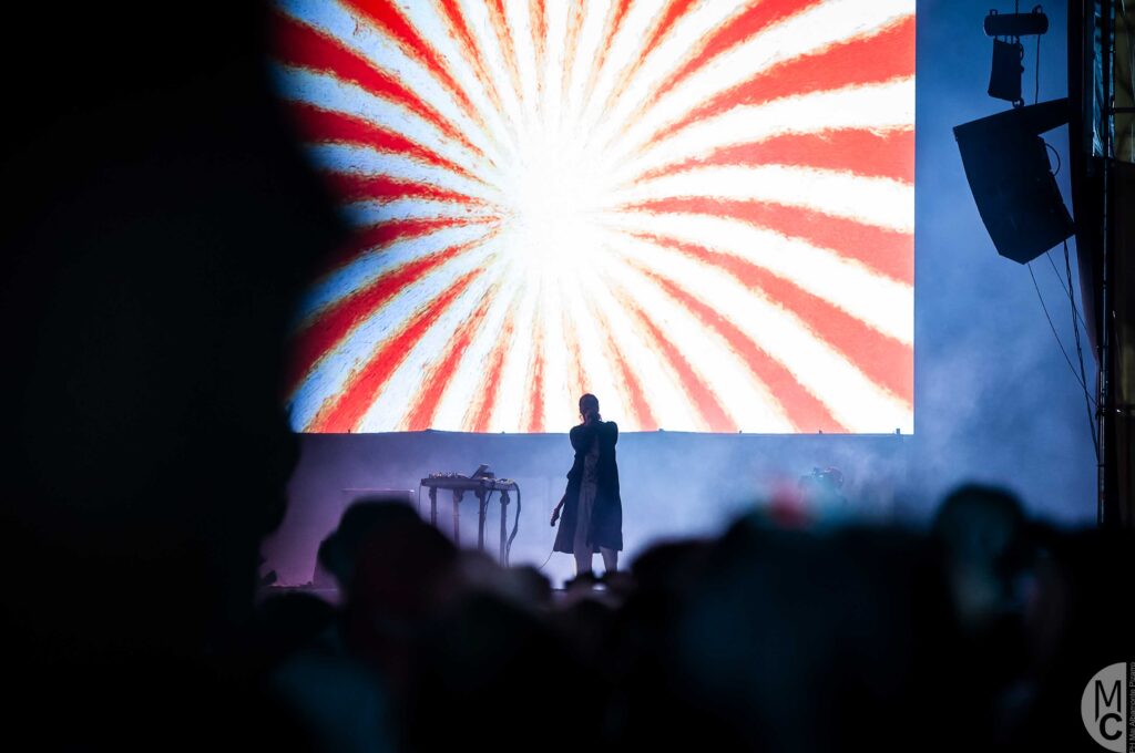 En sincro y como una especie de oda a los colores, la entrada estaba decorada con cortinas llamativas , artistas pintando murales, puntos de hidratación para hacerle frente al calor que picaba, merch oficial del festival, puestos de comidas y bebidas, ropa, carteles y pósters , pins, stickers y (¿porqué no?) Pochoclos.