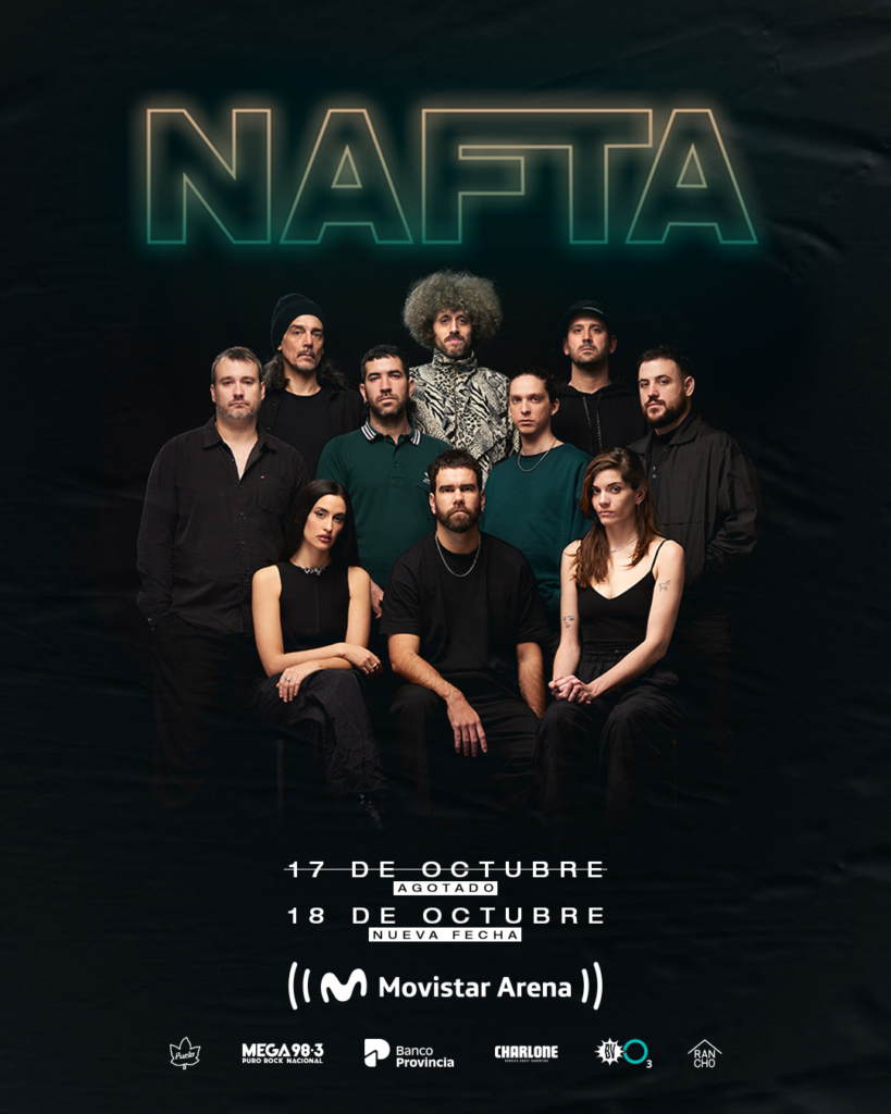 Hace tan solo 15 días, NAFTA anunciaba con emoción su primera presentación en el Movistar Arena de la Ciudad de Buenos Aires, con fecha el jueves 17 de octubre. El show ya está agotado y la banda realizará una nueva fecha al día siguiente, el viernes 18 de octubre.