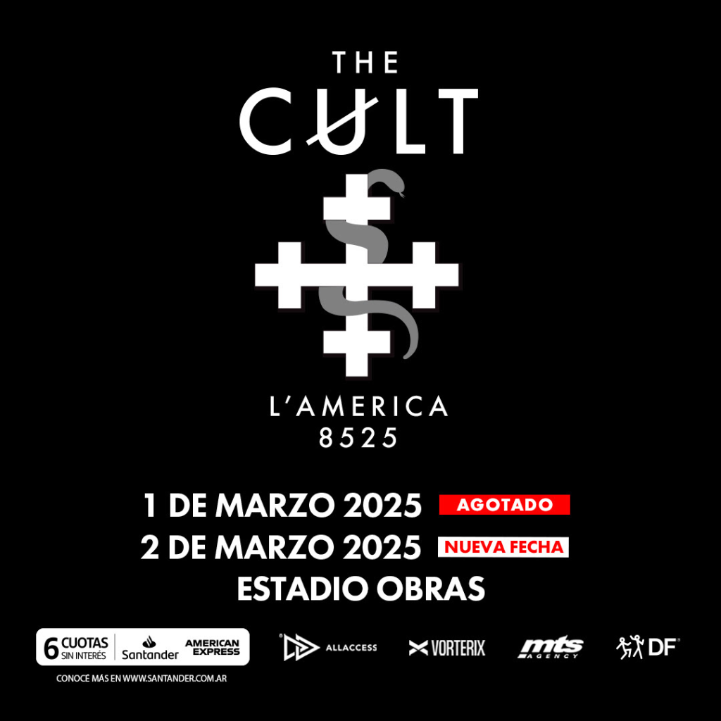 The Cult, una de las bandas más emblemáticas del rock global, regresa a Sudamérica con un espectáculo imperdible que recorre sus 40 años de carrera. Luego de un primer show anunciado en el Estadio Obras, que marcó un regreso triunfal tras su última visita en 2017, la demanda del público argentino los llevará a repetir la experiencia la noche del 2 de marzo.