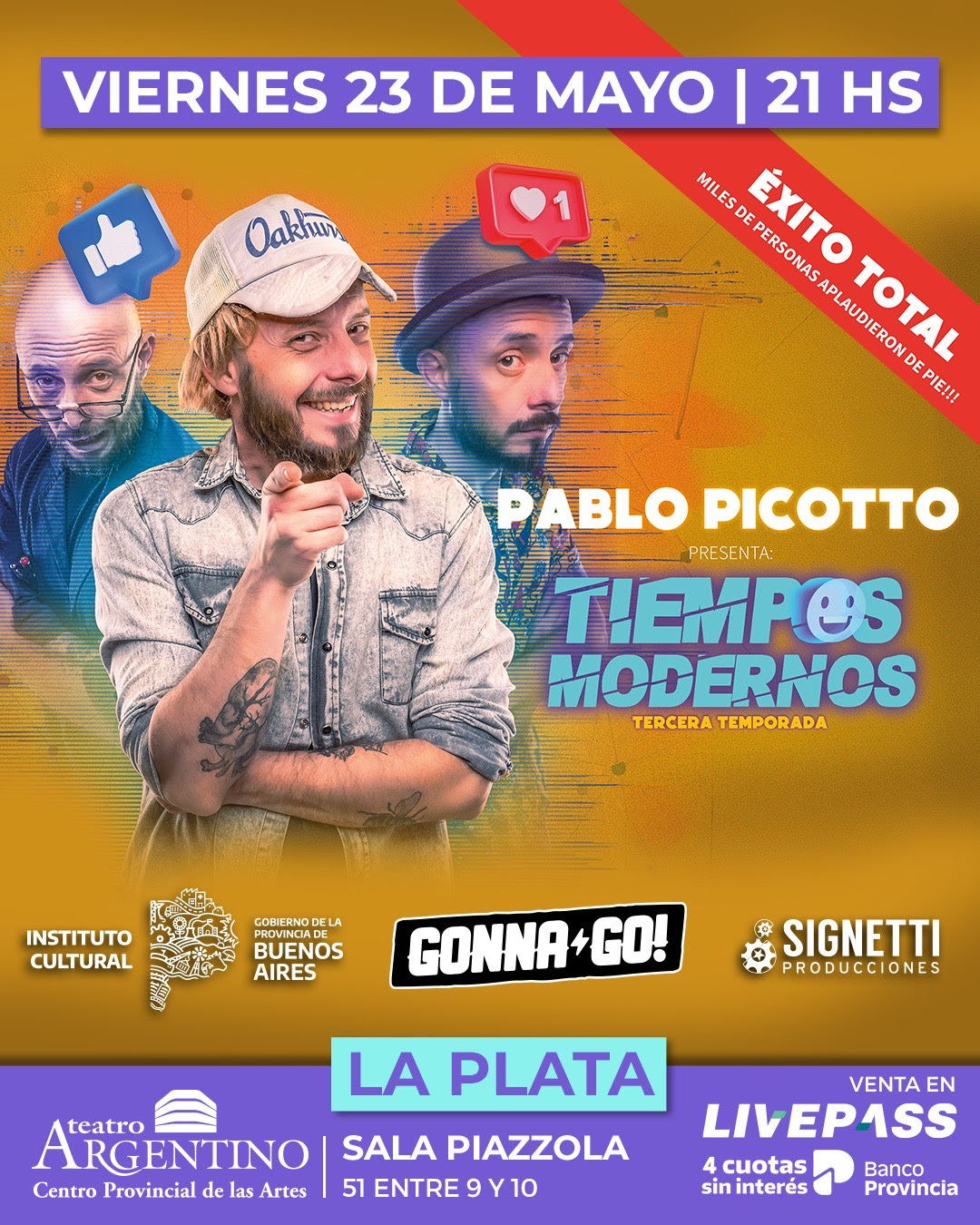 Pablo Picotto llega con su espectáculo ¨Tiempos Modernos¨ a la Sala Piazzola del Teatro Argentino de la ciudad de La Plata, la cita será el viernes 23 de mayo, 21hs.