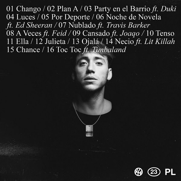 En el álbum también se encuentran colaboraciones como: “Toc Toc” junto a la leyenda del Hip-Hop americano, Timbaland, en una versión extendida a la anteriormente lanzada; “A Veces” junto a Feid, un tema que lleva la fuerza de un ritmo de reggaetón clásico con elementos de percusión contundentes que destaca el junte histórico entre Argentina y Colombia; “Party En El Barrio” junto a Duki, creando una canción épica de dos amigos desde las plazas de Argentina para el mundo entero; “Noche de Novela” junto a su amigo y mega estrella global, Ed Sheeran; y “Nublado”, un Punk Rock contagioso y refrescante junto a Travis Barker, uno de los bateristas más importantes de la escena del punk rock americano, entre otras más.