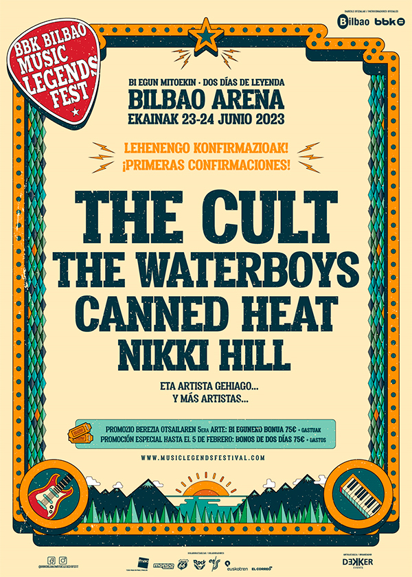 La grandísima banda de hard rock, THE CULT, es el primer cabeza de cartel confirmado por el BBK BILBAO MUSIC LEGENDS FEST para su sexta edición. A la banda británica que acaba de sacar su último trabajo, “Under the Midnight Sun” y que presentará en directo en el Legends, se unen en esta salida del festival otras dos bandas legendarias como, la inspiradora banda escocesa de rock-folk THE WATERBOYS y la banda de blues-rock/boogie formada en Los Ángeles CANNED HEAT. La electrizante nueva reina del soul-rock NIKKI HILL, cierra este esperado arranque, al que se irán uniendo artistas, hasta configurar el cartel definitivo.