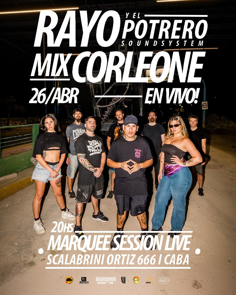 La invitación para presenciar el show de RAYO y de MIX CORLEONE es para el próximo sábado 26 de abril a las 20h., en Marquee Session Live, Av Scalabrini Ortiz 666: @marqueesessionlive