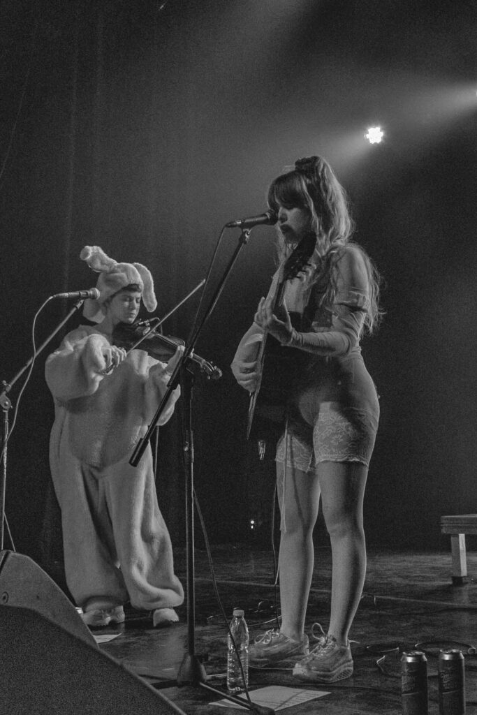 La noche comenzó con la actuación de Piba berreta, una interesante propuesta a violín y guitarra acústica. Fue la previa ideal para el recital de Sara. La Piba Berreta contagio a muchos con su propuesta cancionera a viva voz.