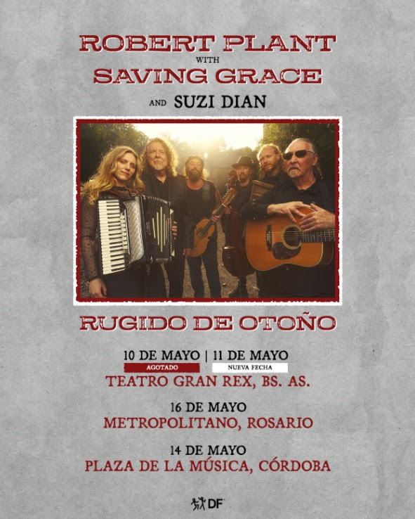 Robert Plant, frontman de la legendaria banda Led Zeppelin y uno de los artistas más influyentes en la historia del rock, regresa a Argentina con “RUGIDO DE OTOÑO ”, el tour con el que presentará su nuevo álbum Saving Grace. Acompañado por la cantante Suzi Dian y una banda de músicos excepcionales —el baterista Oli Jefferson, el guitarrista Tony Kelsey, el bajista y músico de cuerdas Matt Worley, y el violonchelista Barney Morse-Brown—, Plant ofrecerá cuatro shows imperdibles: el 10 y 11 de mayo en el Teatro Gran Rex, el 14 de mayo en Córdoba (Plaza de la Música) y el 16 de mayo en Rosario (Metropolitano).