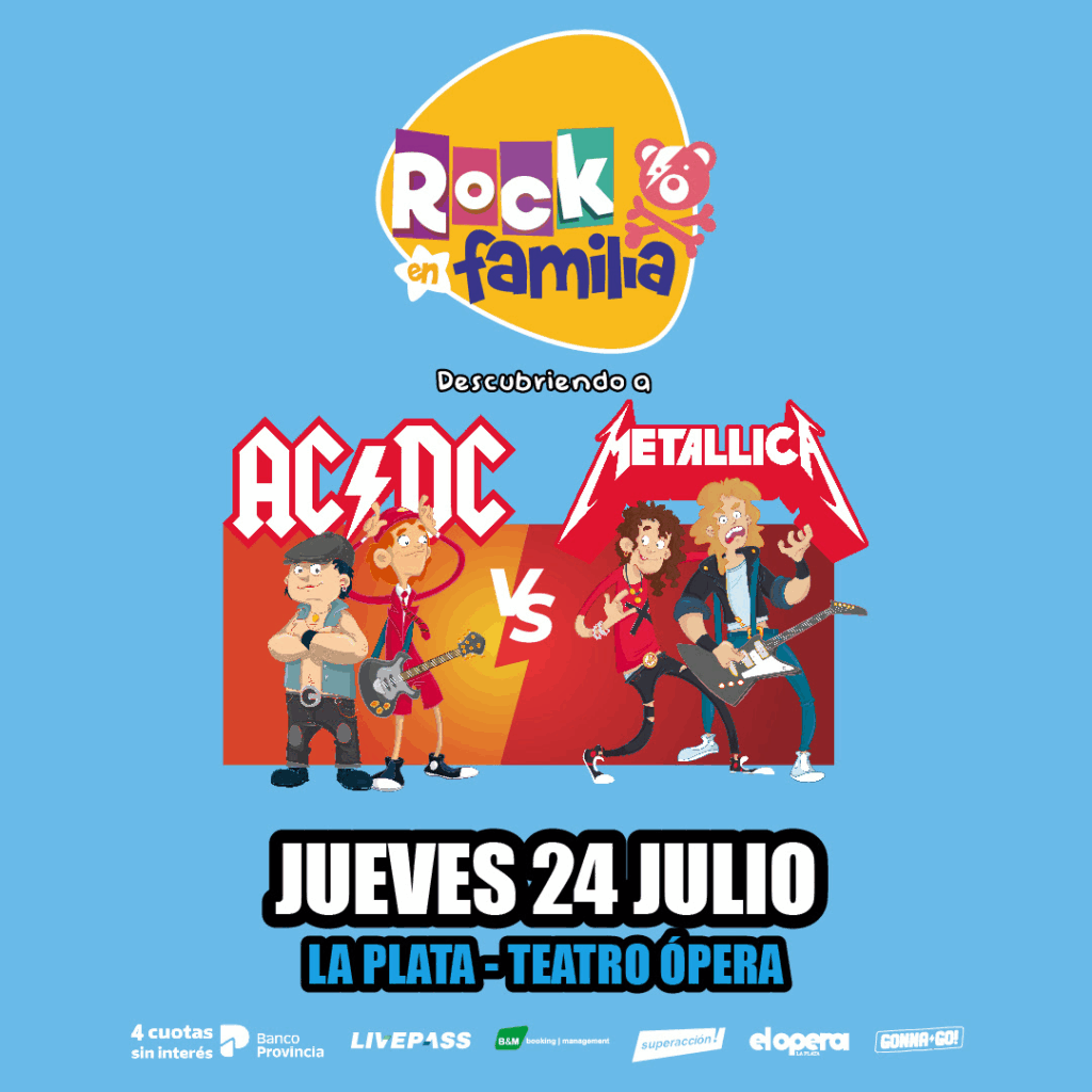 Perfecto para las vacaciones de invierno y una propuesta diferente que llega al Teatro Ópera La Plata ¨Descubriendo a AC/DC y Metallica¨ es un show diseñado para que los pequeños den sus primeros pasos en el rock y que traerá toda la potencia y energía del icónico grupo australiano en un espectáculo pensado para disfrutar y jamás ser olvidado.